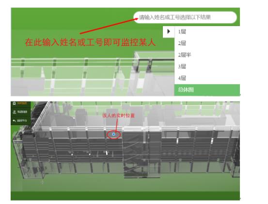 1)实时显示各个区域的人员位置、手环状态、报警信息等;