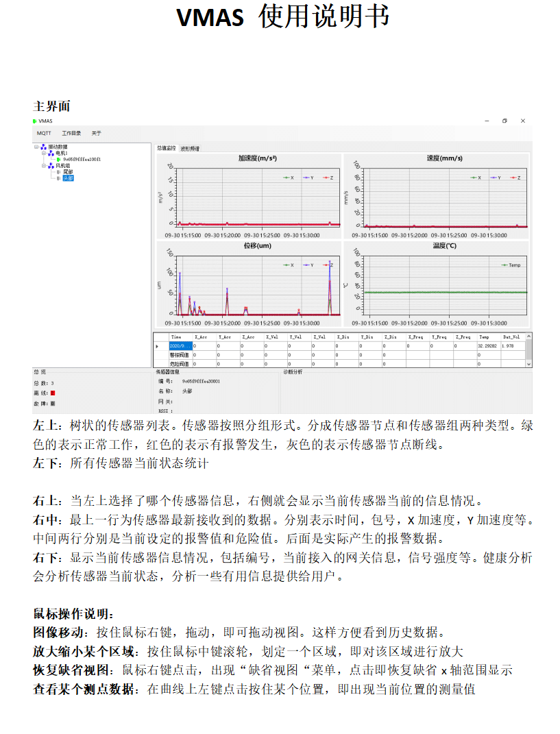 1.振动烈度测量:0~15mm/s Z轴 2.振动频谱分析 0~1000Hz频谱峰值