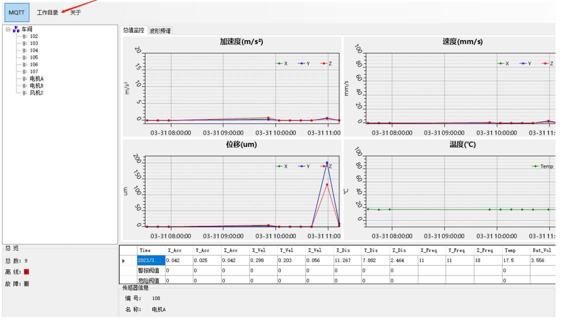 能够监测被测设备的振动位移数据。在想要测量振动加速度或者振动速度时,无需另外增加振动加速度传感器安装在被测设备上,LORA温振传感器拥有监测振动位移的功能,被测设备运行时的X/Y/Z三轴的振动速度及振动位移会同时上传至环境监控平台,人们可以在手机或电脑上远程查看实时数据;