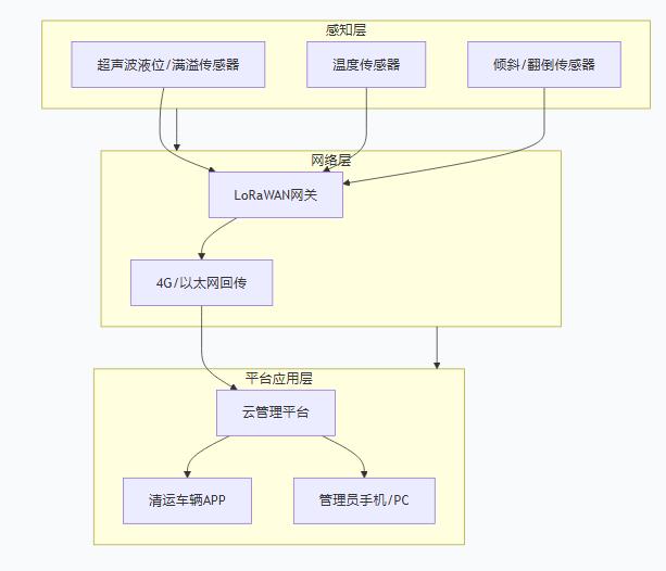 告警与调度:管理人员和清运司机通过PC/APP接收信息,并按优化路线进行清运作业。